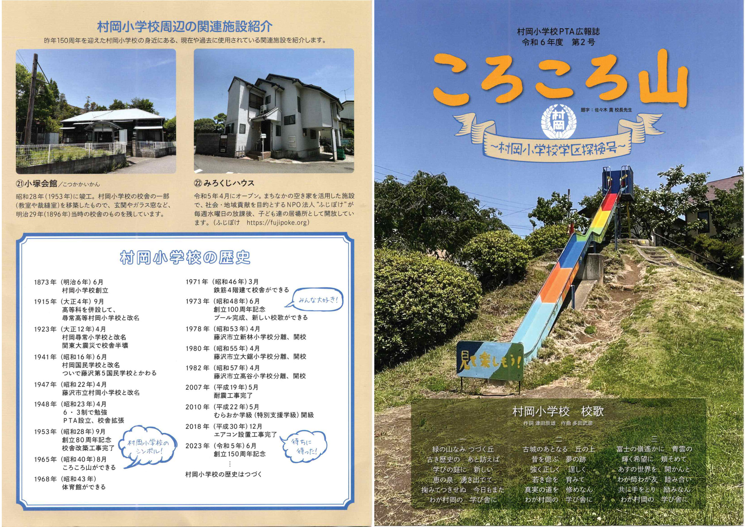 2024年度版の村岡小学校PTA広報誌第2号には、学区内の探検マップが掲載され、みろくじハウスも写真入りで建物と「ふじぽけ」のコメントが載りました。PTAの役員の方が何度か足を運んでいただき、写真撮影や掲載記事を確認してくれました。